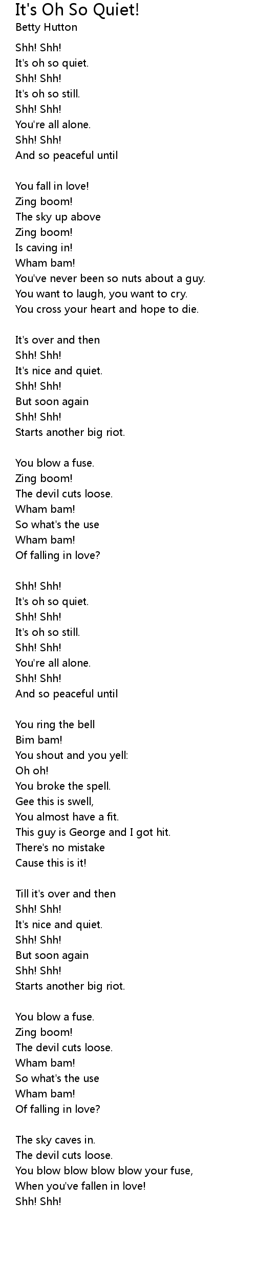 This is a karaoke track for "Quiet" from MATILDA: THE MUSICAL. It features the complete orchestral accompaniment and rolls the . Quiet Lyrics are a theme that is being searched for and favored by netizens these days. You can Save the Quiet Lyrics here. Download all royalty-free pic. LIGHTS "Quiet" Lyrics, LIGHTS "Quiet" Lyrics http://www.twitter.com/LIGHTSFansYT..